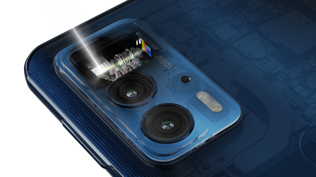 Motorola Edge 20 Pro It features the first periscope-style telephoto lens that bends light 90 degrees for high sharpness from 5 times the distance. To achieve a high-resolution optical zoom, the camera must focus at a greater distance. Therefore, the lens elements of the camera unit must be spaced apart.